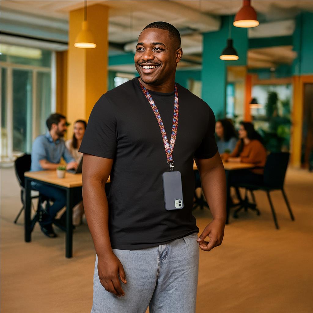 Snap Hook Clip Double-Sided Sublimation Satin Lanyard. This sleek, functional lanyard features a durable phone patch designed to slip seamlessly between your phone and its case. The patch includes a sturdy loop that extends through the charger port opening, allowing you to securely attach your device to the snap hook clip, which can further be used to attach a card holder or your keys. A useful product for everyday convenience and high-impact branding, this satin lanyard showcases your designs in vibrant full-colour sublimation on both sides of the strap — ideal for events, promotions, and on-the-go visibility.