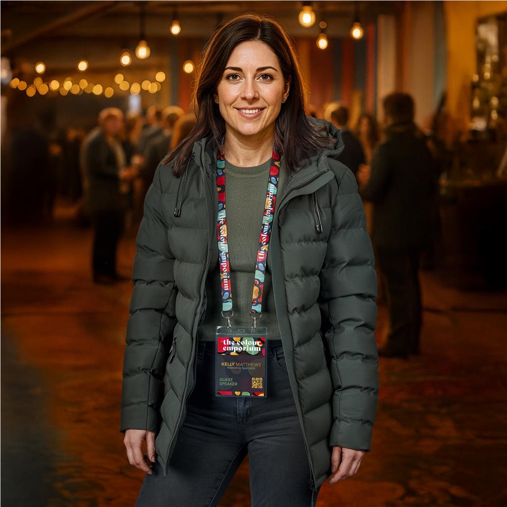 This satin, dual-sided printed lanyard is designed for convenience and comfort. It’s created with two sturdy metal clips – one on each end – for attaching name cards, ID holders, or name pouches with a balanced, tangle-free fit.  Useful for conferences, staff use, exhibitions, or promotional giveaways.