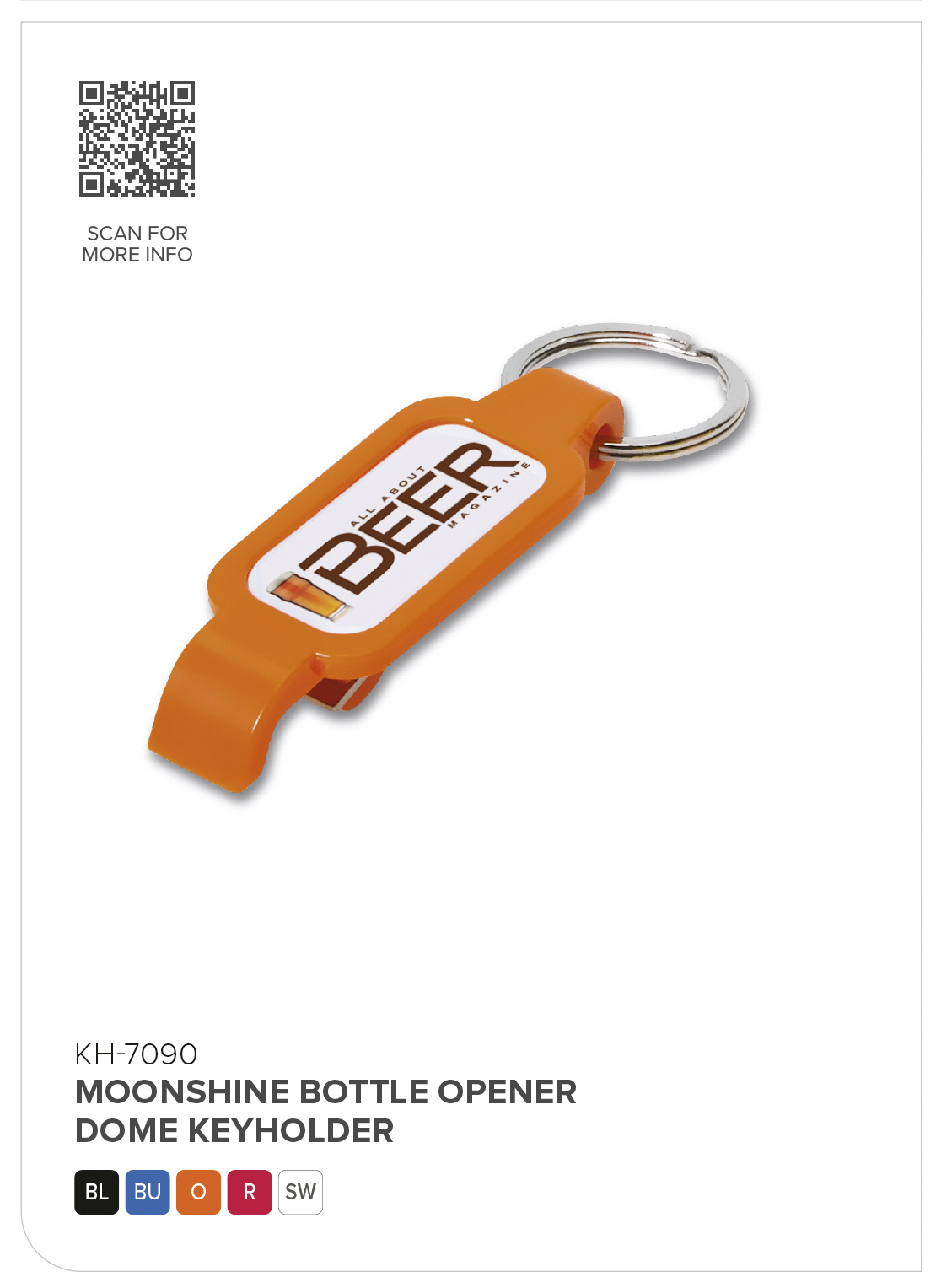 This useful and budget-friendly bottle opener keyholder is designed for prominent full-colour dome branding.