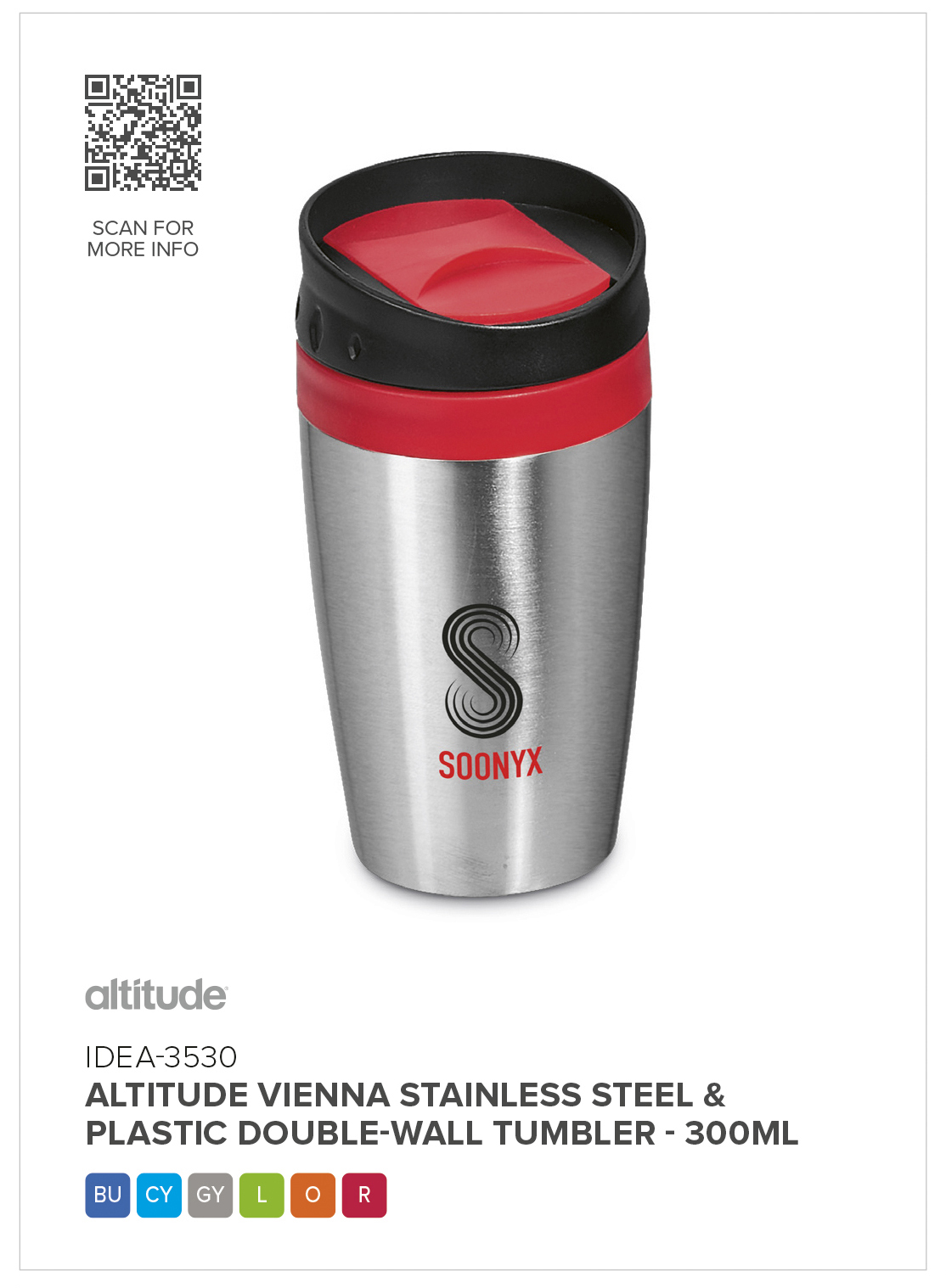 Enjoy your hot drink in style with these funky and modern travel mugs. Each mug features a Thermo tumbler with stainless steel outer and PP inner, secure screw lid and a large thumb slide drink seal, 300ml capacity