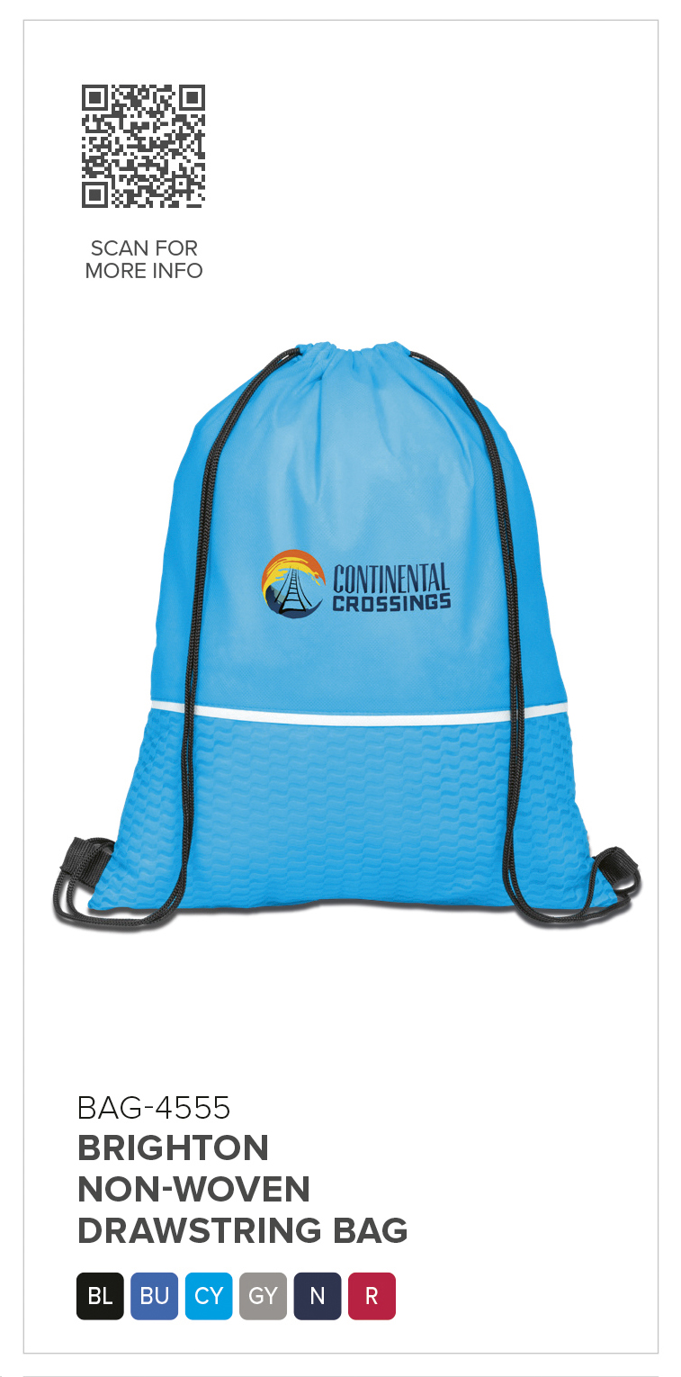 A simple non-woven drawstring bag is uplifted by the cheerful patterned bottom panel, with a plain top panel for branding of your logo or message.